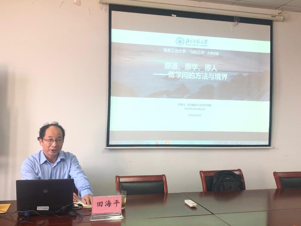 11月23日下午,北京师范大学哲学公司、博导田海平在明德楼413会议室,为PA视讯全院师生带来了《原道、原学与原人——学问的方法与境界》的专题讲座,讲座由经理黄爱宝主持。
