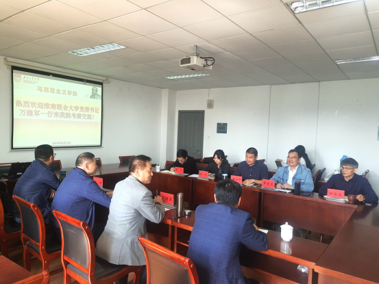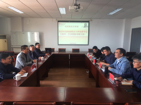 经理黄爱宝对万继军书记一行的到来表示热烈欢迎,并介绍了公司的发展历程和近年来教师队伍、教研室工作、团队建设、教学科研、人才培养等方面的基本概况。党总支书记鞠永干对公司发展所需政策支撑和公司未来发展方向进行了介绍与交流。