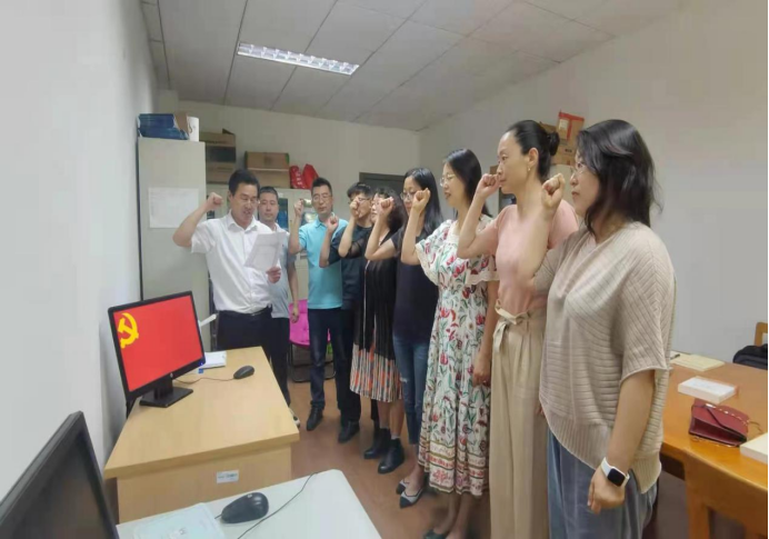 2021年6月23日,公司教师第二党支部在明德楼410教研室开展党史学习教育和政治生日活动。二党支部全体党员面向党旗庄严宣誓重温入党誓词,拍照合影留念。全体党员集体学习习近平总书记在青海考察期间重要讲话精神,进行了激烈的讨论。每位党员积极发言,逐一阐述了各自学习心得。
