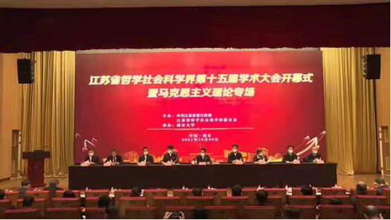 2021年10月30日,由省委宣传部、省社科联主办,南京大学承办的第十五届学术大会开幕式暨马克思主义理论专场在南京大学举行。省委常委、宣传部长张爱军,省人大常委会副主任、省社科联主席曲福田,南京大学党委书记胡金波,东南大学原党委书记、江苏省中国特色社会主义理论体系研究中心主任郭广银,省委宣传部副部长赵金松,省社科公司党委书记、经理夏锦文,省委党校常务副董事长杨明,省委教育工委副书记徐子敏,省社科联党组书记、常务副主席张新科,省社科联党组成员、副主席徐之顺、尚庆飞、周瑞峰、张振等领导出席开幕式。省社科联党组书记、常务副主席张新科主持。