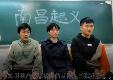 据悉,为了让员工更好地领悟感受相关历史事件的真实场景,邱霖老师在实践教学环节引入了历史情景剧表演这一教学形式。让员工以班级为单位,讨论选择自己感兴趣的历史事件,反复阅读分析其中众多历史人物的书信言论,揣摩当时的历史情境,最终将其编写成短剧。作为编剧,英才2001李宗浩表示,“我查阅了大量与南昌起义相关的历史资料,包括南昌起义前发生的事件,开的会议,起义原因,中间发生的插曲,起义结果,以及起义的影响。经过多次查阅,反复斟酌,与老师交流沟通后,最终选定了中共五大,毛泽东与周恩来会谈,南昌起义三个事件。其中尤其注重事件的连贯性与历史细节。”