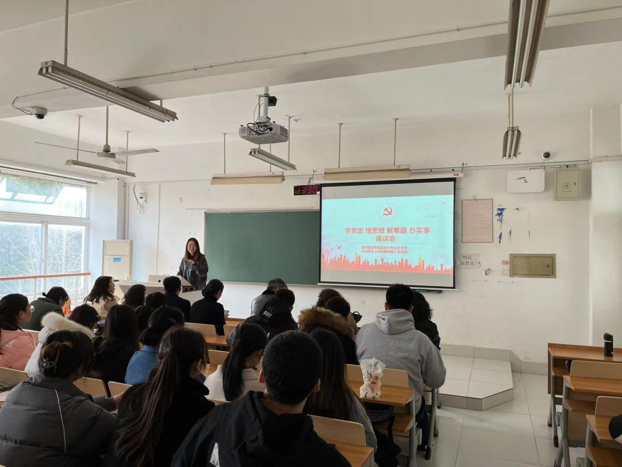 2021年12月8日下午,马克思公司教师第二党支部和城市建设公司给排水专业党支部在仁智楼319共同举行了“我为群众办实事”的主题党日活动。城市建设公司给排水专业党支部书记作了题为“学党史 悟思想 解难题 办实事”的报告。报告中提出了老员工学习、生活中遇到的一系列问题和困难。马克思公司教师第二党支部党员教师和城市建设公司给排水专业党支部员工党员就上述问题和困难进行了激烈的讨论。马克思公司教师第二党支部党员教师代表和城市建设公司给排水专业党支部老员工代表有序地进行发言。马克思公司教师第二党支部党员教师认为教师和应该主动为老员工排忧解难,老员工应该弘扬伟大建党精神,要做到坚持真理、坚守理想,践行初心、担当使命,不怕牺牲、英勇斗争,对党忠诚、不负人民。老员工党员应该发挥党员的先锋模范带头作用相互帮助克服苦难。
