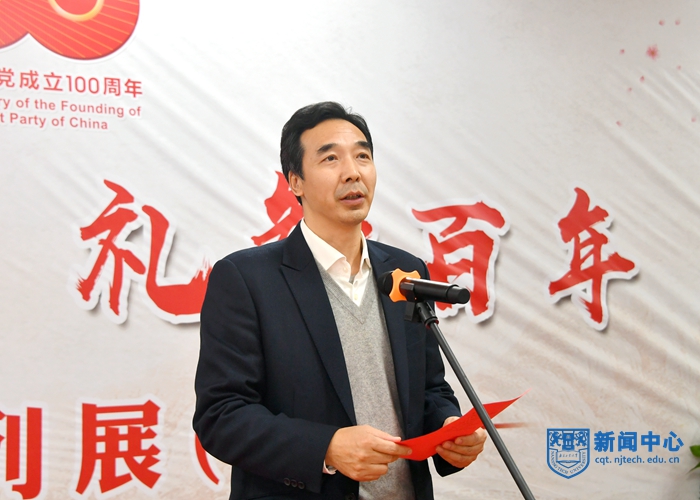 芮鸿岩书记在开展仪式上致辞。他指出,此次展览翻转课堂,充分发动了员工参与度,将课堂搬出教室,增强了教学的亲和力,是思想政治理论课教学改革创新的一次有益探索。他对广大师生提出三点期望:一是以史为鉴,汲取精神伟力,在新的赶考路上坚定理想、坚守信念。广大师生要进一步提高政治站位,持续巩固深化党史学习教育成果,将学习贯彻党的十九届六中全会精神作为当前首要政治任务抓紧抓实,要进一步汲取党的百年历史蕴含的丰富经验智慧,为奋进新征程、建功新时代厚植开拓情怀,厚积奋斗伟力,真正做到学史明理、学史增信、学史崇德、学史力行。二是脚踏实地,矢志艰苦奋斗,在新的赶考路上施展本领、锻炼才干。思政课教师队伍要围绕“浇花浇根,育人育心”的工作目标,把思政课越办越好,为落实立德树人根本任务、培养担当民族复兴大任的时代新人奉献力量。三是奋楫向前,追梦时代蓝图,在新的赶考路上继往开来、开拓创新。新时代新青年要更加清楚地认识到肩上重任,牢筑信仰之基,补足精神之钙,把稳思想之舵,坚定前进脚步,要将“请党放心、强国有我”的青春誓言内化于心、外化于行,勇立潮头,不负韶华,用奋斗绘就新时代新篇章。