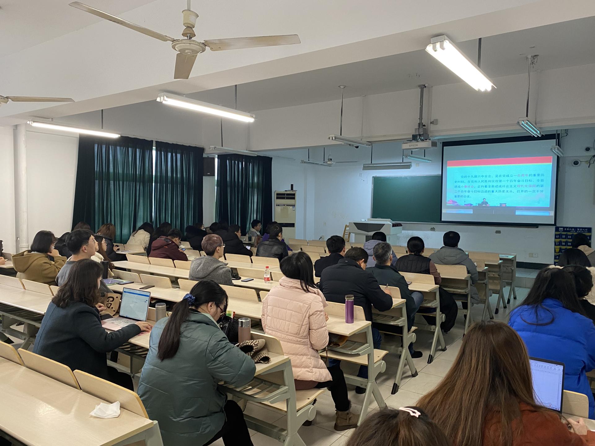 为深入贯彻学习党的十九届六中全会精神,2021年12月16日下午15:00,公司组织全体师生在厚学楼303集中收看党的十九届六中全会精神宣讲报告会。公司特别邀请省委宣讲团成员,省社科院经理夏锦文为公司师生作“深刻把握党的百年奋斗重大成就和历史经验”的主题宣讲报告。