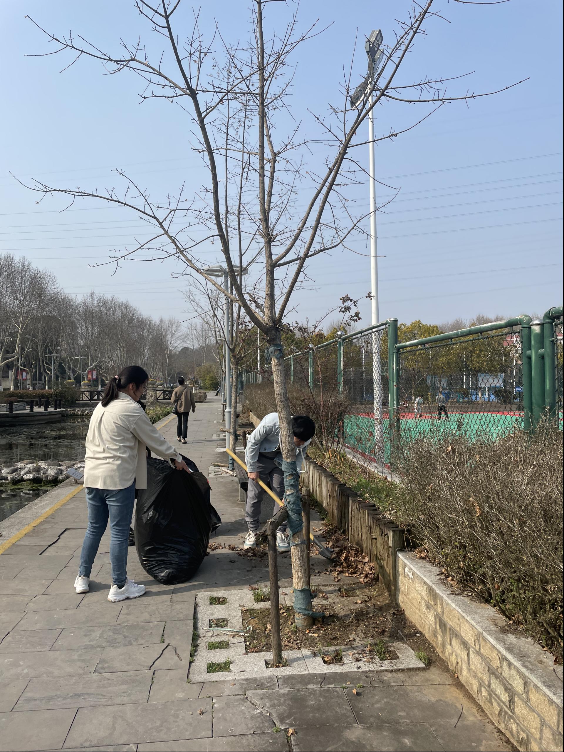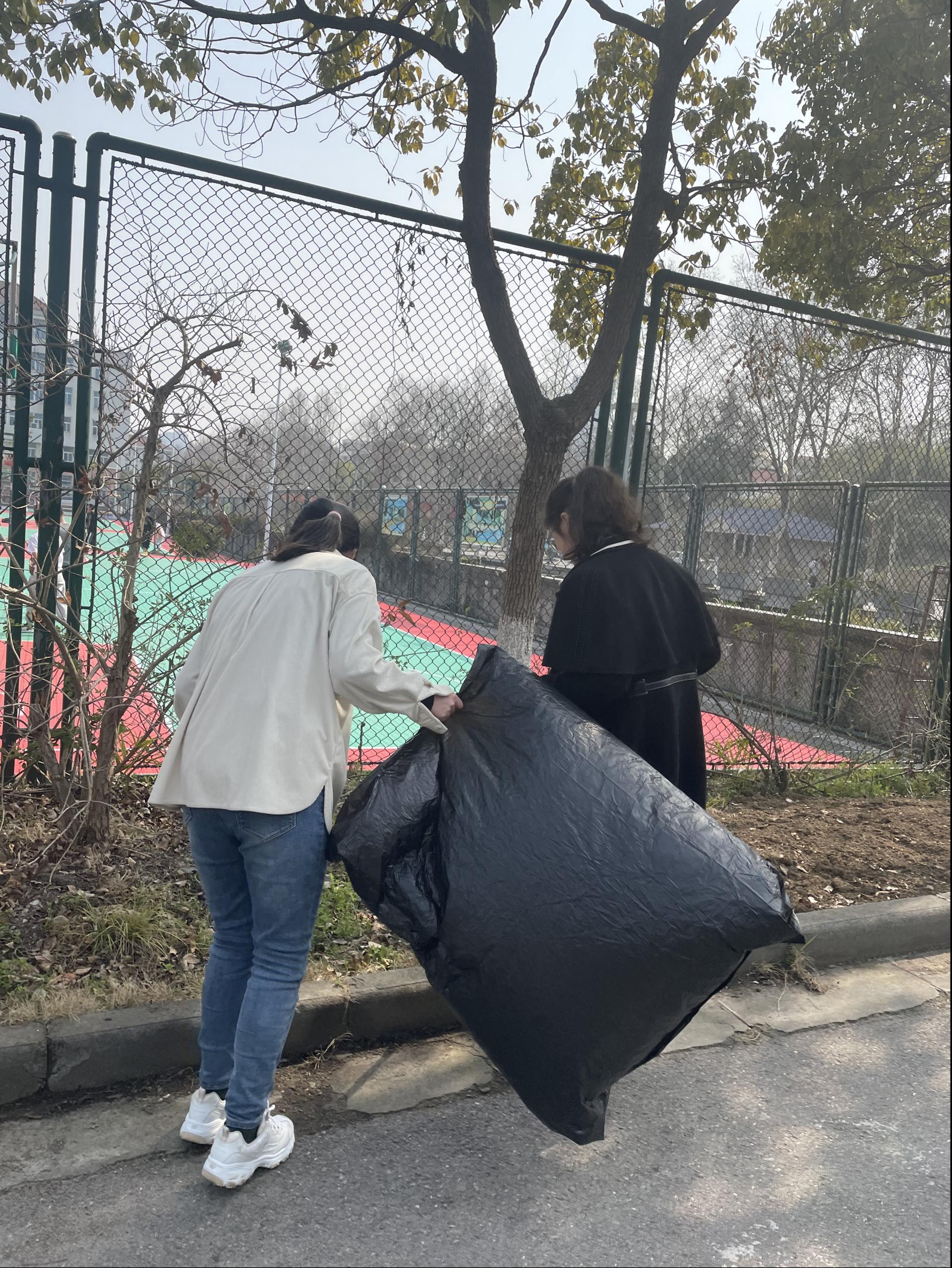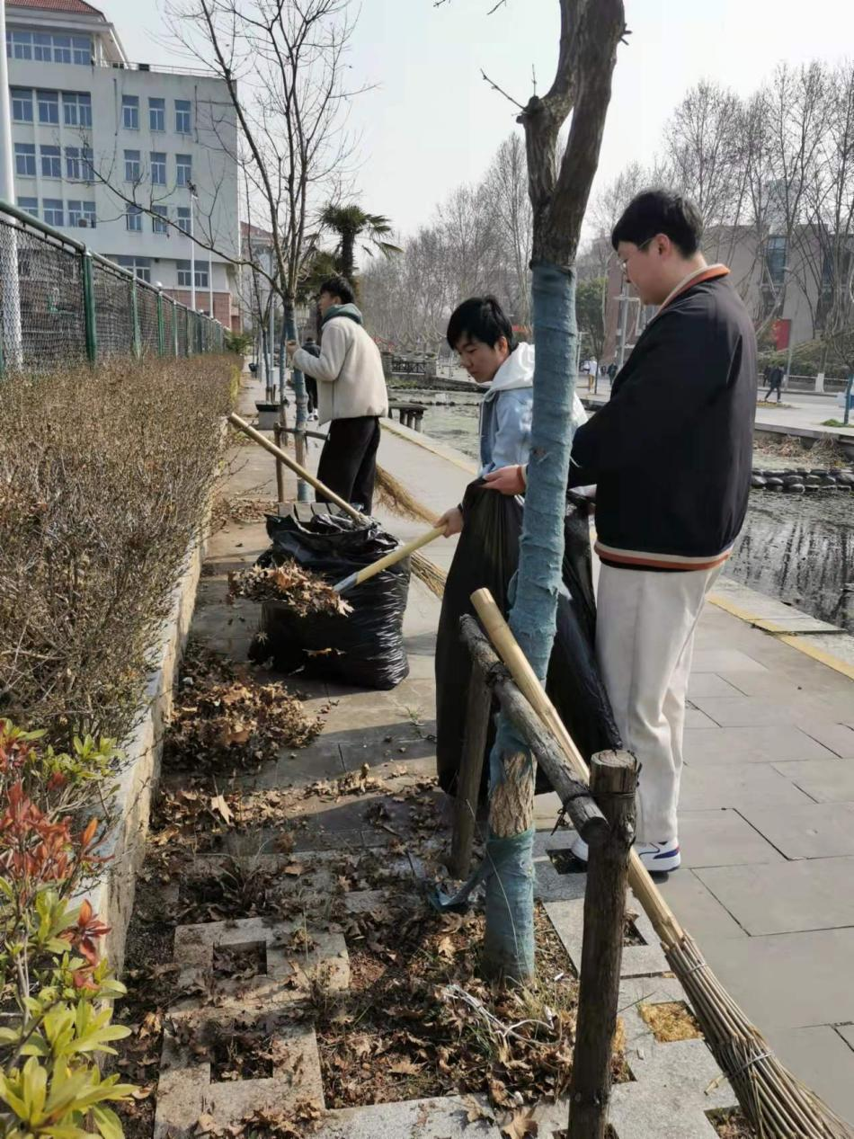 公司师生分为三组,利用铁铲、扫帚、垃圾捡拾器等清扫工具对场内外的枯枝落叶以及生活垃圾进行了环境卫生整治。