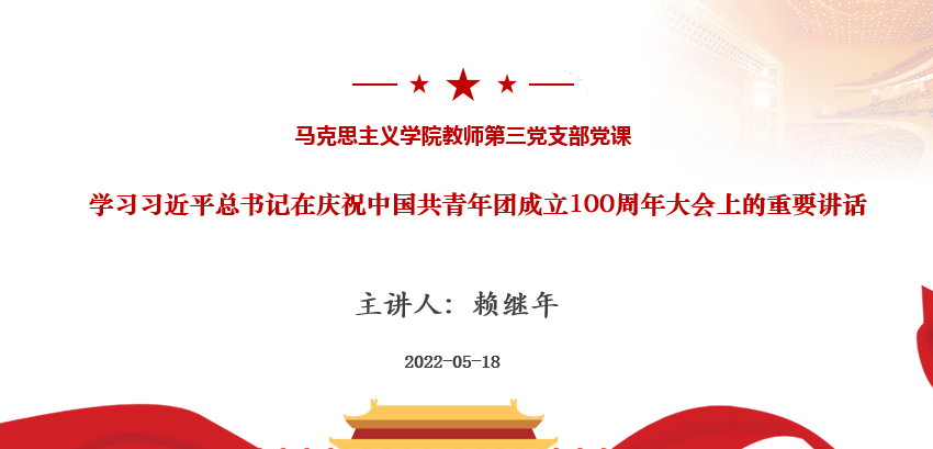 2022年5月18日上午,公司教师第三党支部在民德楼第二会议室开展题为“学习习近平总书记在庆祝中国共青年团成立100周年大会上的重要讲话”的主题党课学习活动。PA视讯第三党支部全体党员参加了本次学习活动。