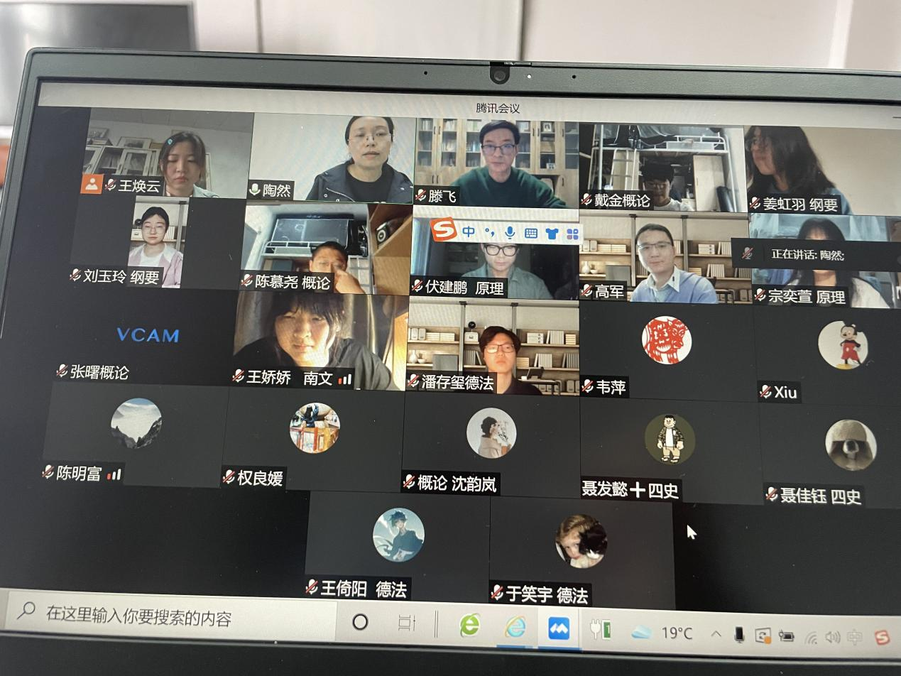 在认真倾听同学们的想法和建议后,各教研室的主任们分享了自己的看法。滕飞主任强调大学思政课与高中思政课的不同之处,在于会更加地深入与拓展,不能只强调幽默性,更要有针对性、理论性。权良媛主任表达思政课对师生都是有要求的,老师要学习、弄懂、领悟,通过灵活的教学方式让员工感兴趣;员工要用心学、用心悟,端正学习态度,在云端形成良好的学风。任云飞主任认为师生都是思政课的关键角色,“好玩”不是评价一门课的重点所在。张秀勤主任从员工关切的问题切入,指出从学分、学时的角度可以看出党和国家对概论课的重视程度。要重视经典阅读、调查研究,通过理论与实践互动来学习概论课程。陈明富主任强调南文课开设的目标是希望能让思想政治教育与中国优秀传统文化相结合。在接下来的课程建设中,希望同学们积极提建议,老师们不断提升教学艺术、教学手段、教学方法,进一步提高教学质量。高军主任认为从内容上来看,四史课程具有独有的特色与重点,如何与四门思政主干课程衔接好,尽可能减少内容上的重复,是接下来需要思考的问题。从形式层面来看,希望通过集体备课等方式,丰富与优化实践教学形式。