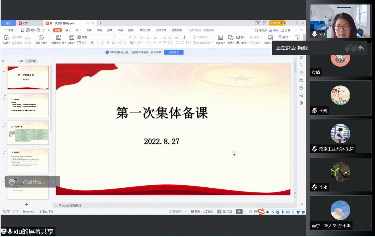 2022年8月27日,在公司统一工作部署下,《概论》课教研室召开本学期第一次集体备会。本次集体备课会以腾讯会议形式进行。首先,教研室加强统一认识,明确把原来的“概论”课分为两门课,虽然教学任务重,但要高质量完成任务。其次,对两门课的理论教学、实践教学和考核形式等情况进行说明。最后,全体教师就教学问题进行研讨。