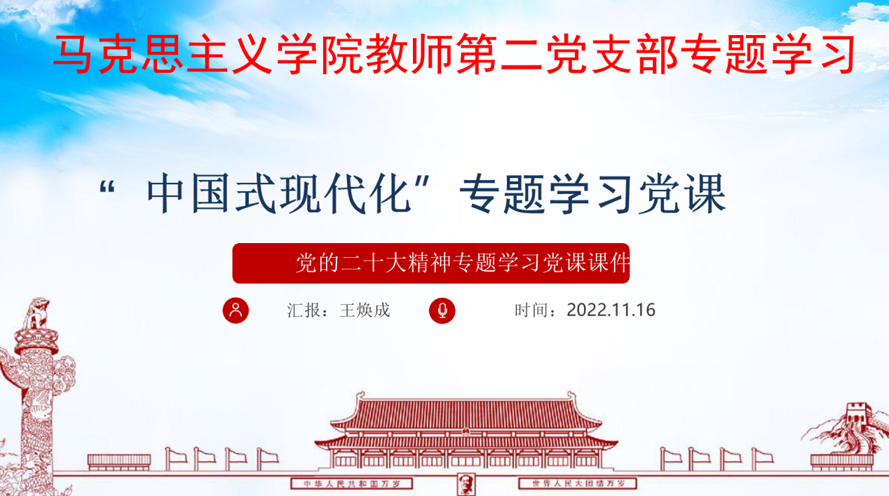 2022年11月16日,PA视讯教师第二党支部全体党员通过腾讯会议开展以中国式现代化为主题 党的二十大精神专题党课学习活动。支部全体党员以认真学习贯彻落实党的二十大精神为首要政治任务,迅速掀起学习热潮,原原本本学、注重结合学、示范带头学、贯穿工作全过程学,坚定不移地在思想上、政治上、行动上同以习近平同志为核心的党中央保持高度一致。支部书记带领全体党员共同学习了中国式现代化的内涵、本质要求、理论背景和依据、战略安排和准则。然后大家进行热烈的讨论。大家认为中国式现代化是党的二十大报告的重要亮点之一,是实现第二个百年目标和全面建设社会主义现代化国家的重要抓手。中国式现代化是中国特色社会主义的现代化,必须坚持和加强党的全面领导,坚持中国特色社会主义道路,坚持以人民为中心的发展思想,坚持深化改革开放,坚持发扬斗争精神。中国式现代化是人口规模巨大的现代化,是全体人民共同富裕的现代化,是物质文明和精神文明相协调的现代化,是人与自然和谐共生的现代化,是走和平发展道路的现代化。