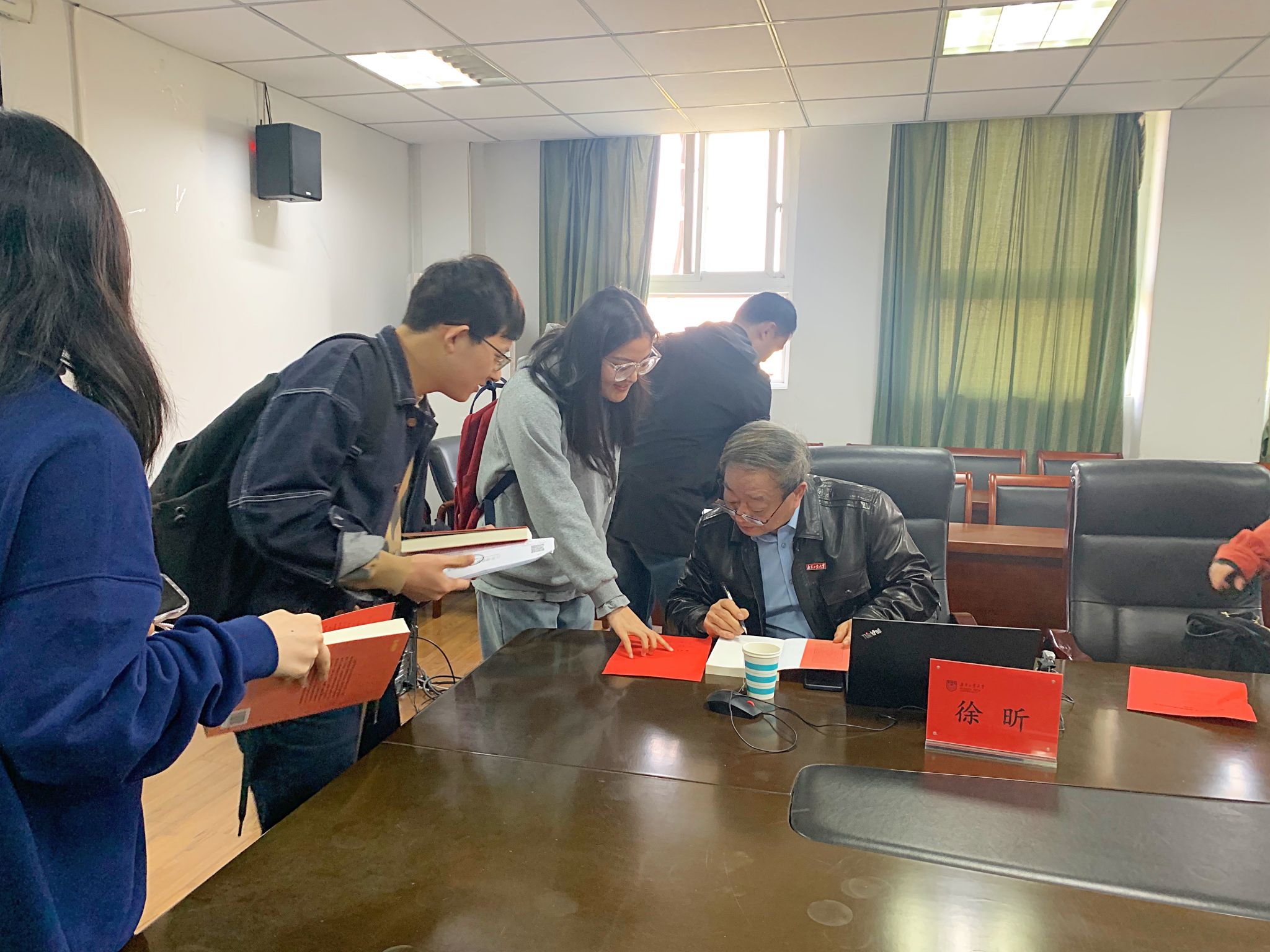 讲座中,徐教授首先提出“自我革命战略思想”是一个螺旋式上升、随着时代发展不断深化的认识过程,“自我革命”是继“人民监督政府”后回答如何“跳出历史周期率”的第二个答案;并从中国传统文化中理清“党”的发展脉络。接着,徐教授以世界视角把握中国共产党自我革命战略思想的科学性,梳理了世界各政党的萌芽、壮大到衰落的过程,列举了《共产党宣言》等马克思主义经典中关于自我革命的论述;梳理了十八大以来习近平关于自我革命的重要论述,面面俱到,史论结合。徐教授知识渊博,平易近人,用高亢顿挫的讲说将党的历史文化娓娓道来,在场的青年教师和研究生对党的形成和发展历史有了更加全面的了解,扩展了大家的视野和思路。在互动问答阶段,针对老师们提出的问题,徐教授分别进行了细心的指导与解答。会后,徐教授将他的著作《自我革命——新时代党的建设伟大方略》一书赠予师生们,并现场签名合影。