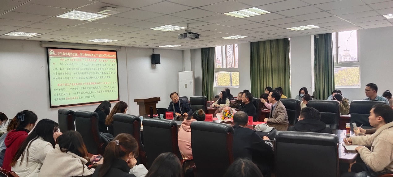 3月22日下午,中共江苏省委党校廉政教育研究中心原主任、二级教授,扬州大学特聘教授、博士生导师,扬州大学中共党史党建研究院经理王世谊教授受邀在明德楼第二会议室为公司师生带来《遵守党内法规制度与健全全面从严治党体系》专题讲座,公司党委副书记吴胜红教授出席本次讲座,讲座由经理眭国荣教授主持。