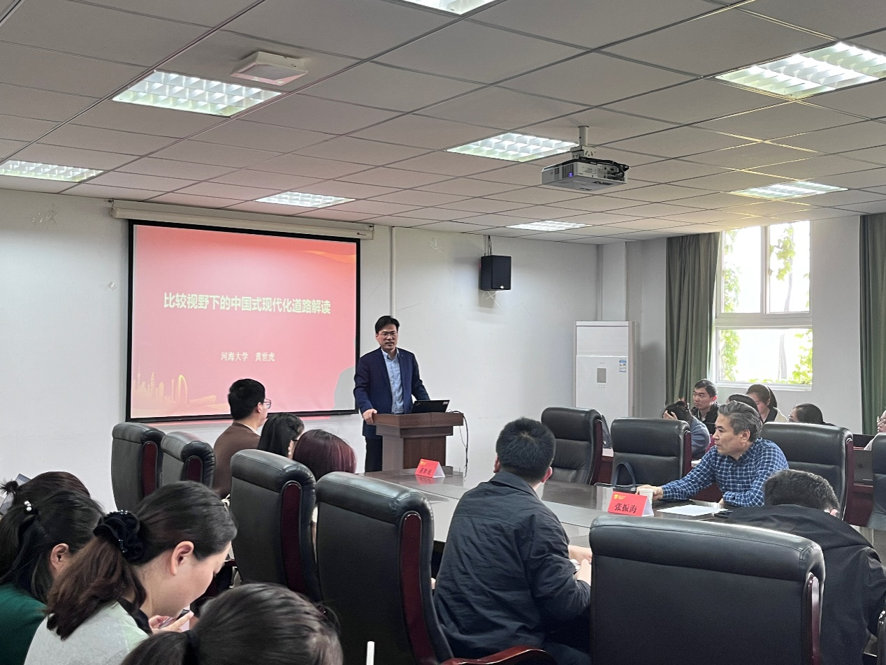 4月12日下午,河海大学PA视讯教授、博士生导师黄世虎教授受邀在明德楼第二会议室为公司师生带来《比较视野下的中国式现代化道路解读》专题讲座,公司党总支书记张振海出席并主持讲座,公司师生代表参加讲座。