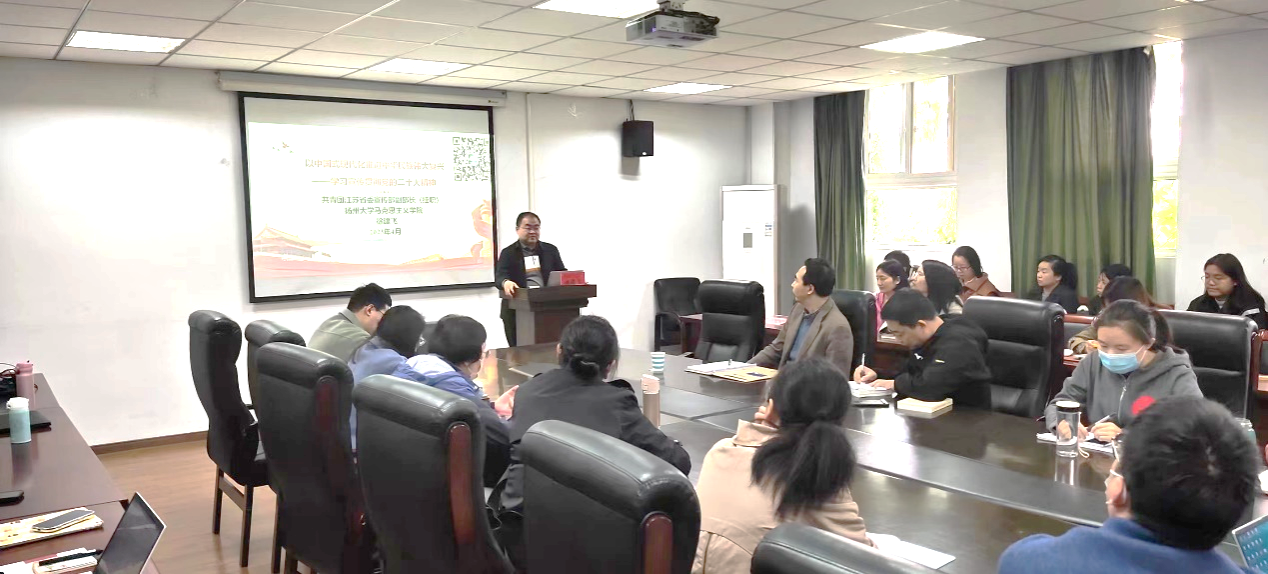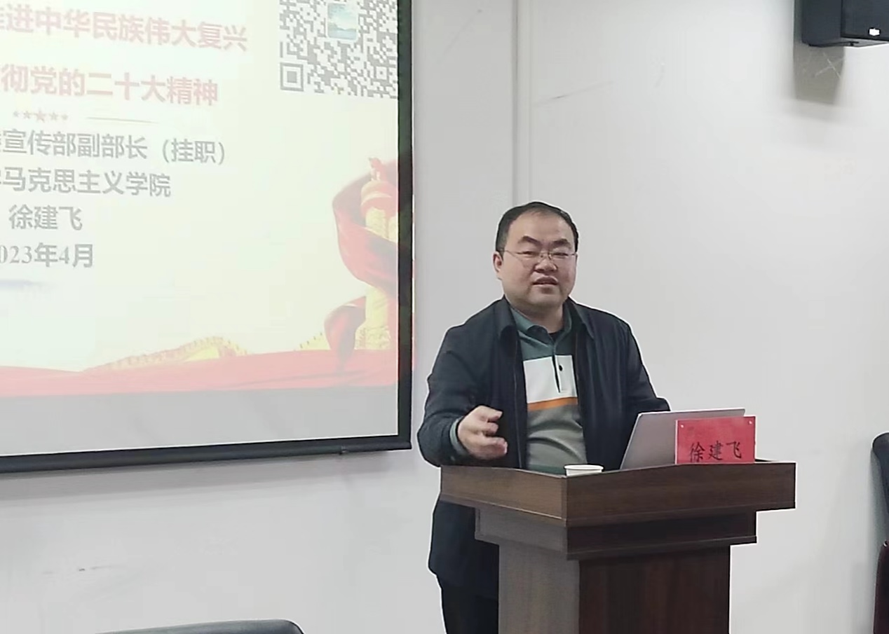 4月25日下午,根据公司主题教育读书班总体安排,PA视讯在认真完成读书班学习要求的基础上,主动引导和带动全院师生深入学习贯彻习近平新时代中国特色社会主义思想。邀请共青团江苏省委宣传部副部长、扬州大学PA视讯副教授徐建飞,在明德楼第二会议室作《以中国式现代化全面推进中华民族伟大复兴》主题讲座,公司理论学习中心组全体成员,各党支部书记及师生党员代表参加讲座。经理眭国荣教授主持。