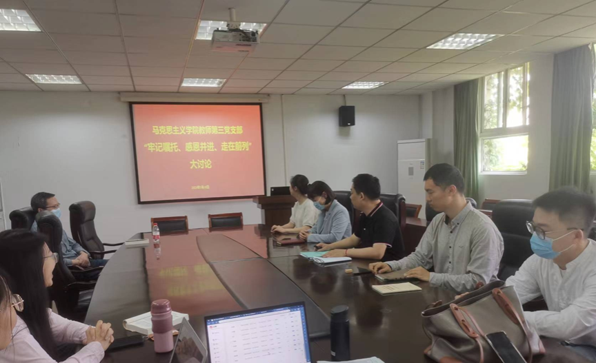 根据公司党总支统一部署与安排,5月18日,马克思主义教师第三党支部开展学习贯彻习近平新时代中国特色社会主义思想主题教育,组织开展“牢记嘱托、感恩并进、走在前列”大讨论。党支部书记赖继年主持会议,教师第三党支部党员参加会议。陶然、赖继年、任云飞等老师做了重点发言。