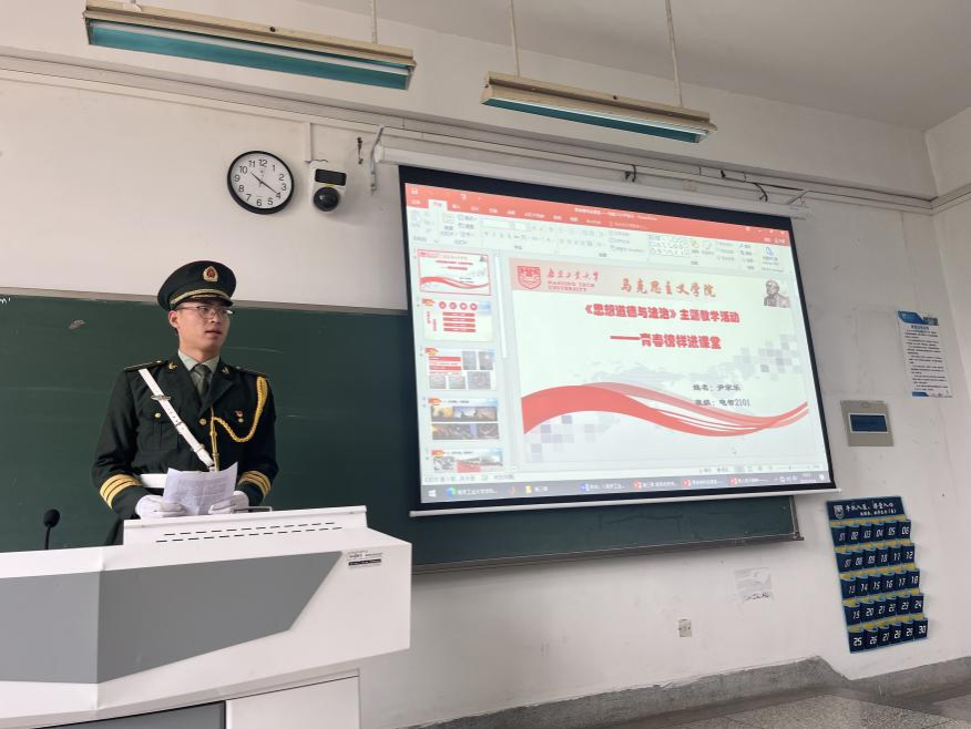 通过前期推荐、培训试讲,本次主题教学活动共遴选10余位荣获省三好、省优干、校“老员工年度人物”、校“十大杰出青年员工”等荣誉的优秀学子以及退伍老员工士兵、校国旗护卫队队员组成“青春榜样讲师团”,走进《思想道德与法治》的课堂,累计宣讲50余次。他们以“中国精神”为主题,结合自身成长经历,将青春故事和奋斗事迹娓娓道来,充分展现出新一代南工大学子不畏艰难、砥砺奋进的精神风貌。课堂上,讲师团成员与在场同学们深入交流,气氛热烈,提高了思政课教学的实效性和针对性。