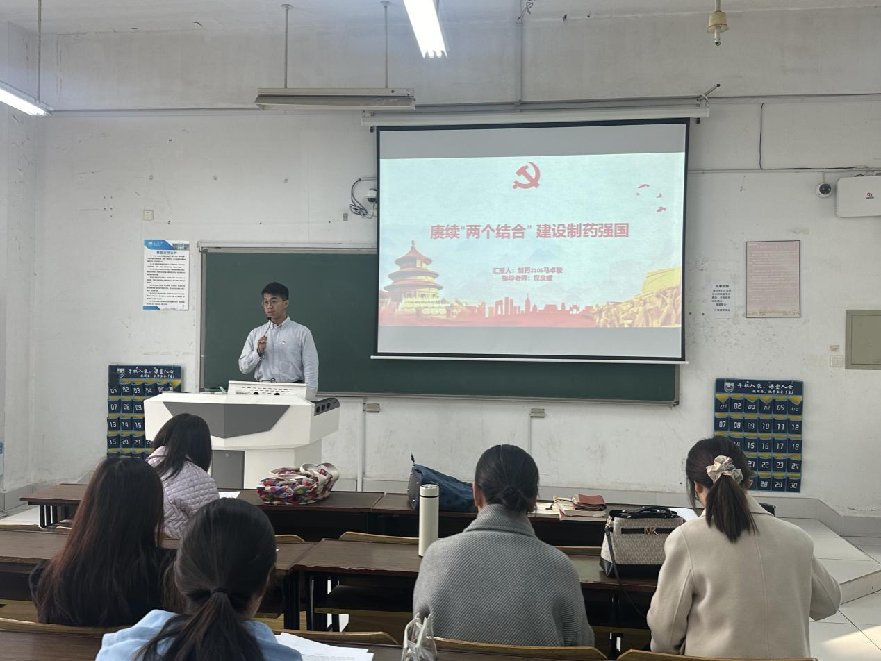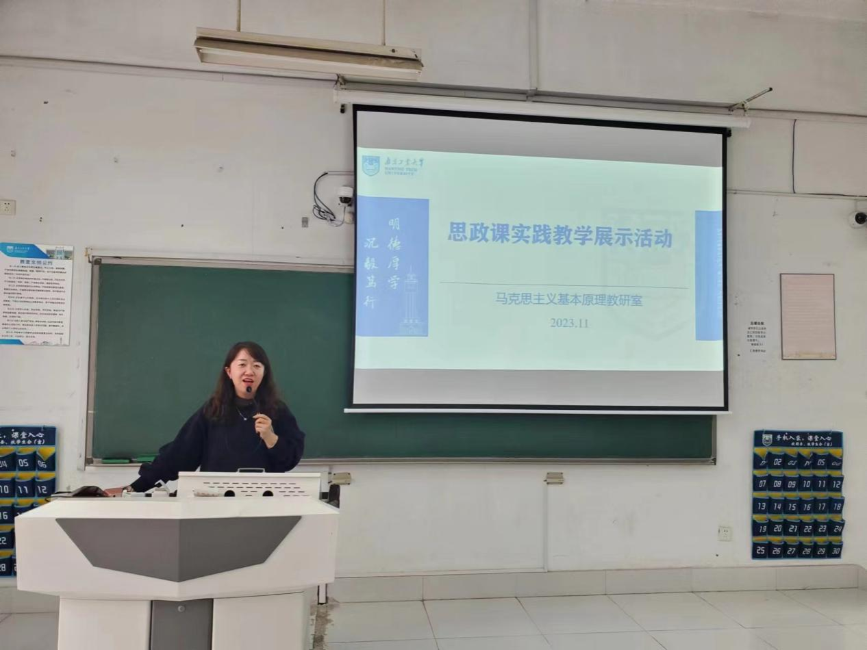 教研室全体任课老师各自的优秀员工代表围绕“坚定理想信念,做强国好青年”主题,结合自己的专业和成长经历,将马克思主义基本原理和中国具体实际相结合进行了优秀论文分享,具有12个不同专业背景的同学们汇报精彩纷呈:周红梅老师指导的李雨含通过引入昆明橡皮书店、南京先锋书店、扬州边城书店等典型案例,结合矛盾普遍性和特殊性原理,分析在互联网冲击下独立书店如何突破阻力,实现发展,指出了精神需求对人类活动的重要性;陈伟华老师指导的李铮凯同学,从化学发展的物质对象、动力源泉,谈守正创新、理量变质变,紧扣中国“化学人”坚持的精神,厚积薄发,创新发展;权良媛老师指导的马卓骏同学以“赓续‘两个结合’ 建设制药强国”为题,围绕扎根中国具体实际、探寻中国医药脉络、立足中国青年发展三个层面,谈马克思主义作为真理对实践的积极推动作用;颜鸿老师指导的周奕言同学以“与世界相交,与时代相通”为主题,分析中国在交通领域各方面成就,通过科学制定发展规划、以人民为中心的交通建设,推动中国交通事业取得了巨大成功……他们的汇报指出,中国共产党坚持以马克思主义为指导,将其基本原理融入到中国具体实际中,是正确的、有效的。