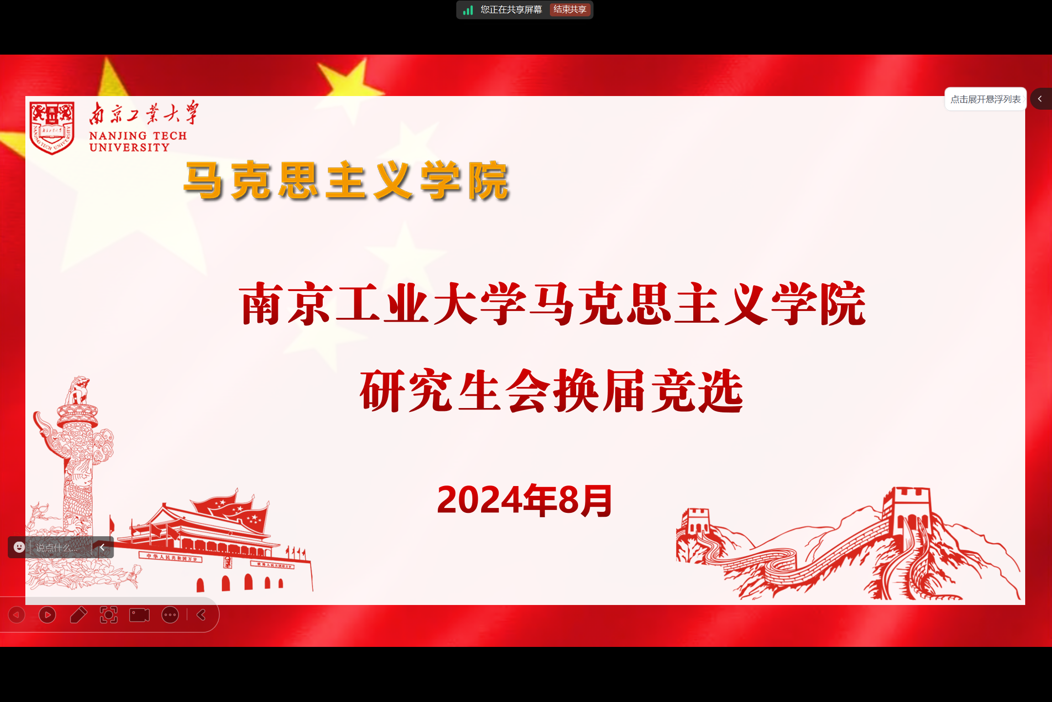 为完善员工管理体制机制,8月28日下午,公司举行2023届研究生会主席团成员换届选举大会。公司研究生辅导员何云梦老师、2023届研究生会全体成员,部分研究生参与本次会议,会议由研会主席团成员曹馨升主持。