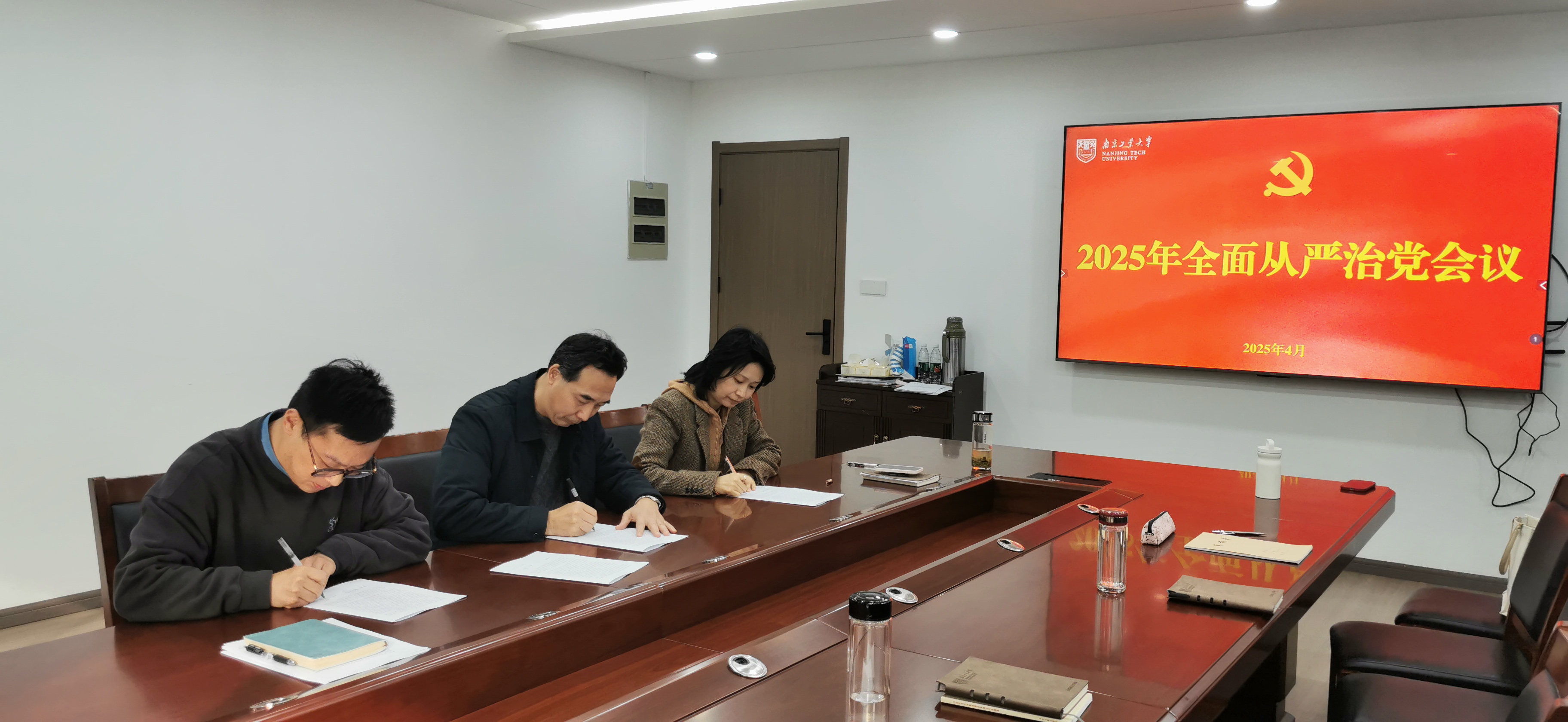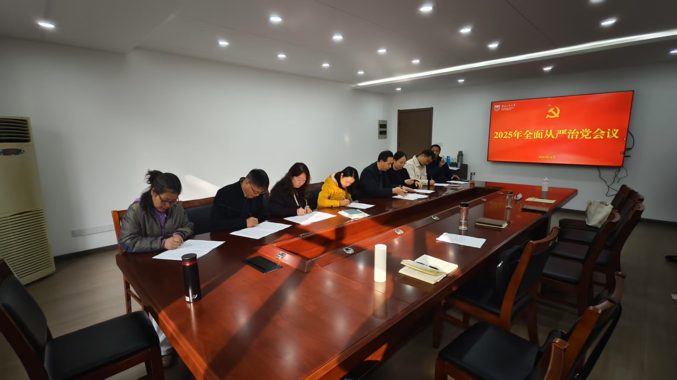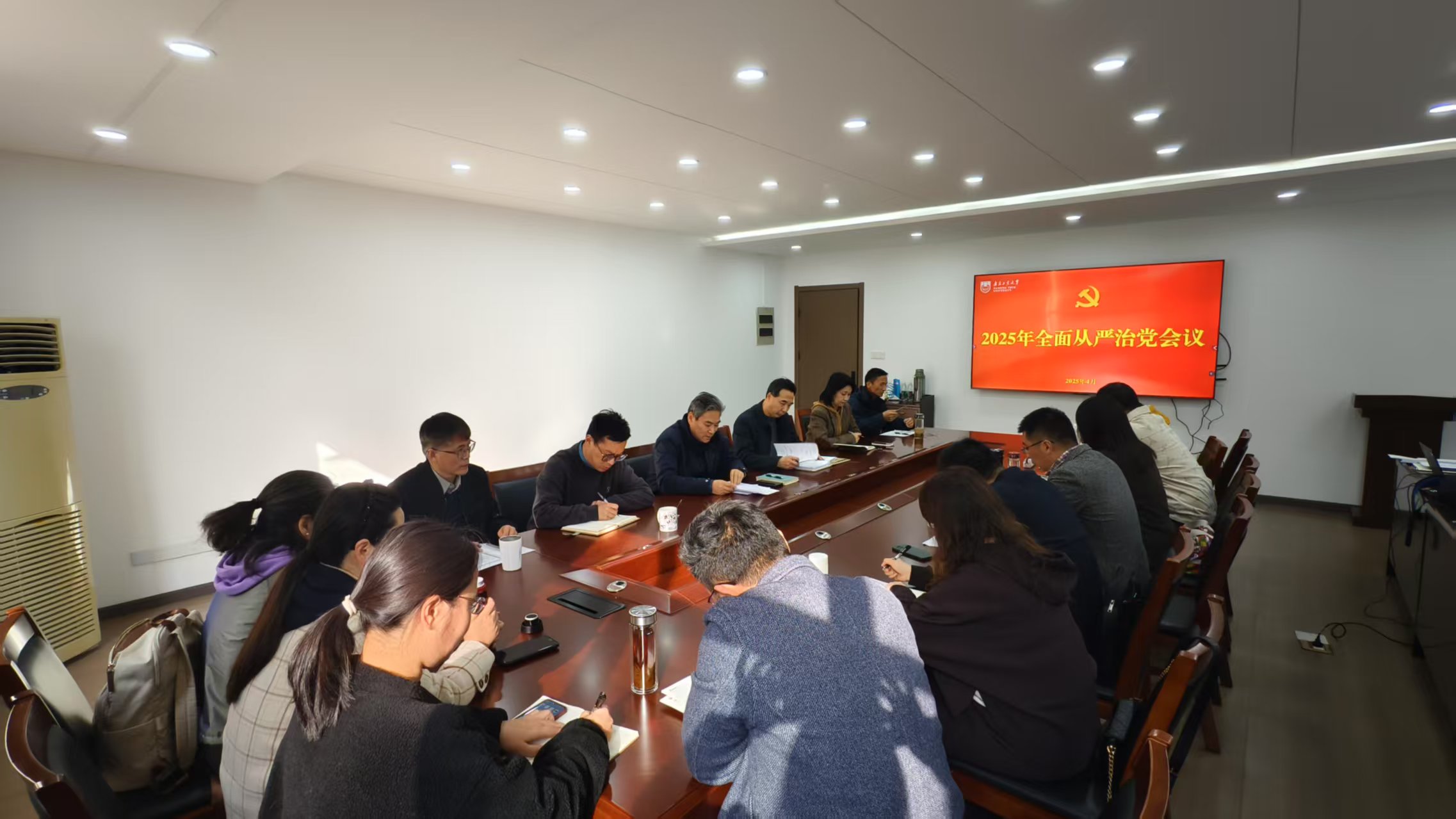 为深入学习贯彻公司2025年全面从严治党暨警示教育大会精神,统筹推进公司全面从严治党工作,2025年4月1日下午,公司在笃学楼302会议室召开全面从严治党工作会议。会议由公司党委书记张振海主持,公司领导班子成员、党政办主任、教师党支部书记、各教研室主任、专职组织员及相关人员参加会议。