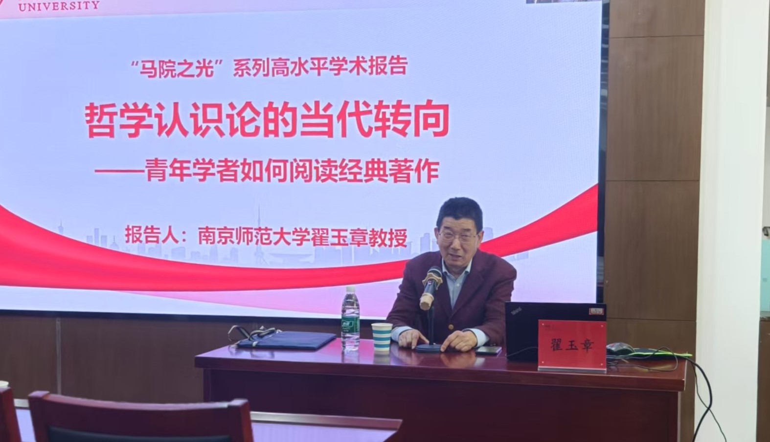 2025年5月13日下午,南京师范大学公共管理公司教授、博士生导师、国内分析哲学领域的知名学者翟玉章教授受邀在笃学楼402会议室为公司师生带来《哲学认识论的当代转向——青年学者如何阅读经典著作》专题报告。翟玉章教授基于笛卡尔创立的近代认识论,着重从休谟对基础主义的初步批判、奎因对基础主义的彻底清算两方面展现了从基础主义到自然主义的哲学认识论的当代转向,并以奎因为分析中心展现了对循环论证与缺乏规范性两种诘难的理论回应。此外,翟玉章教授还以奎因为例,与青年学者探讨了如何阅读经典著作,激励青年学者多读经典,从经典著作中汲取科研的智慧与力量。参会师生纷纷表示,翟玉章教授理论功底深厚,立足学界前沿,讲座深入浅出,给师生们带来了一场丰盛的思想盛宴。