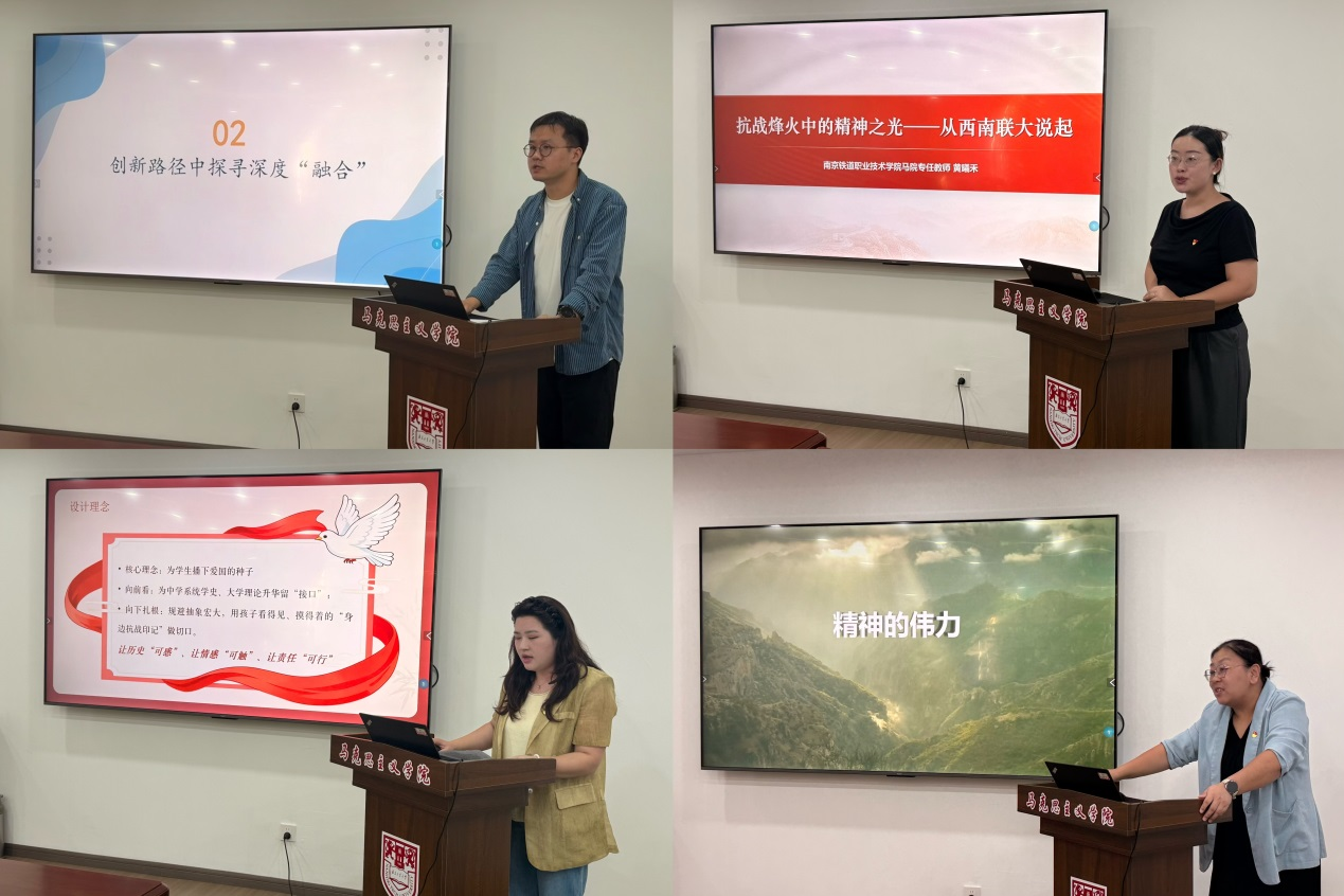 在教学展示交流阶段,各学段教师代表分别做“伟大抗战精神”融入大中小学思政课展示教学。PA视讯官方网站实验小学庄浩伟老师从《语文》《道德与法治》《习近平新时代中国特色社会主义思想员工读本》三门教材分析将伟大抗战精神融入小学思政教育的创新路径。南京市第一中学江北新区分校狄梦越老师以“探寻身边的抗战记忆”为主题展示了一套完整的“社会实践+课堂分享”实践教学案例。南京铁道职业技术公司PA视讯黄曦禾老师讲述了抗战烽火中的精神之光——西南联大教育救国的动人故事,从中汲取教育征程的奋进力量。PA视讯李慧老师讲授了高校《思想道德与法治》课程第三章第一讲“中国精神是兴国强国之魂”的内容,教育引导老员工将“精神的伟力”转化为实现民族复兴伟业的具体行动。