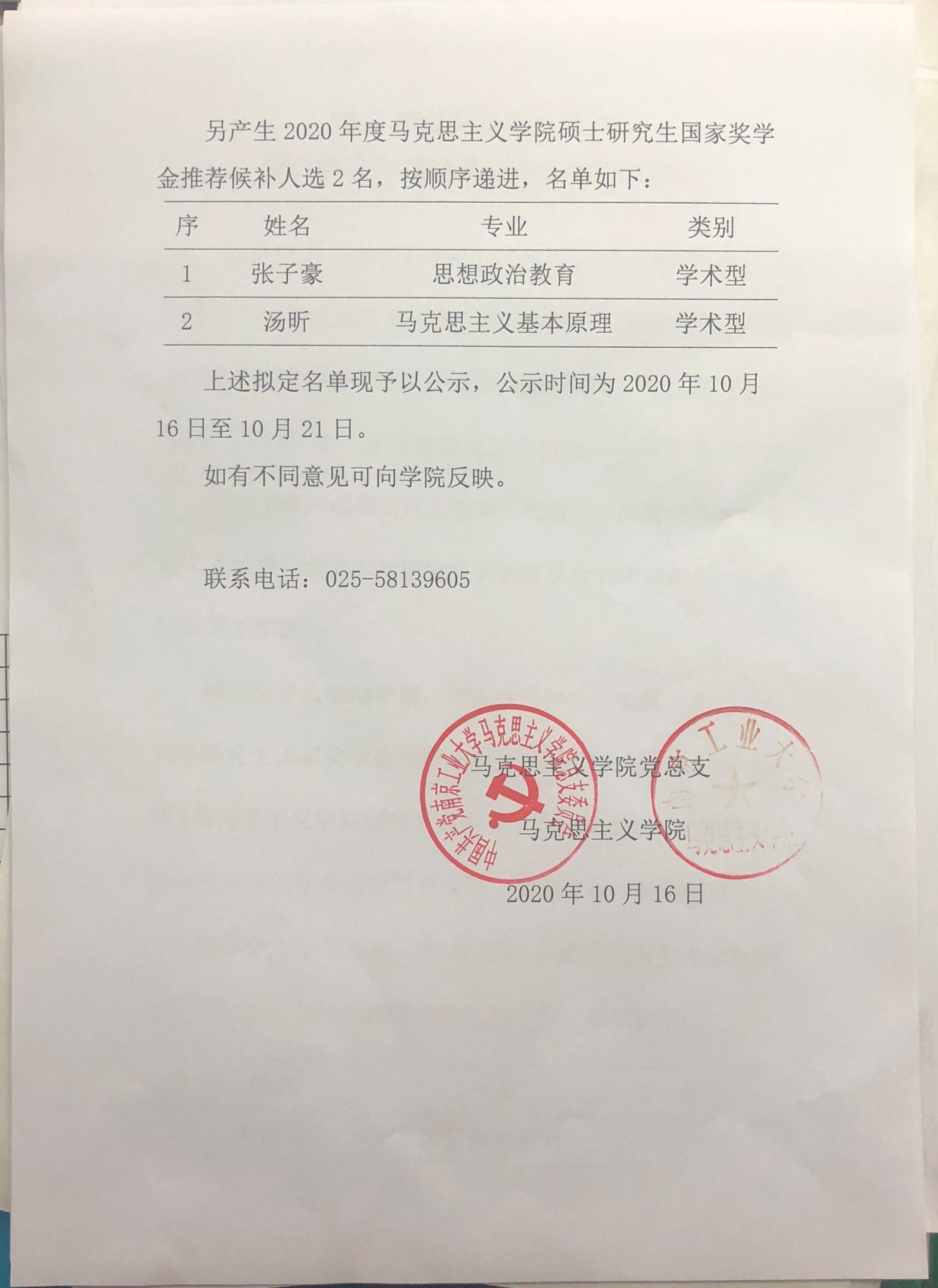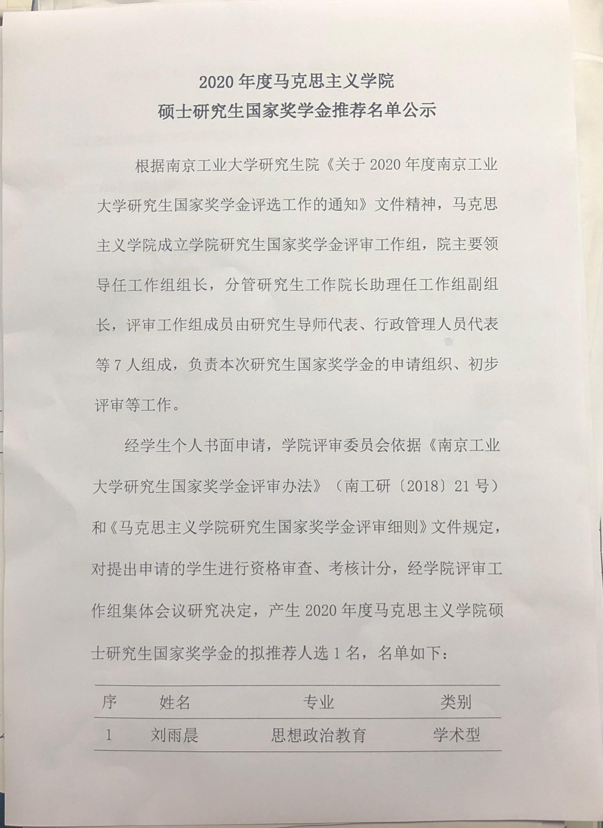 2020年度PA视讯硕士研究生国家奖学金推荐名单公示