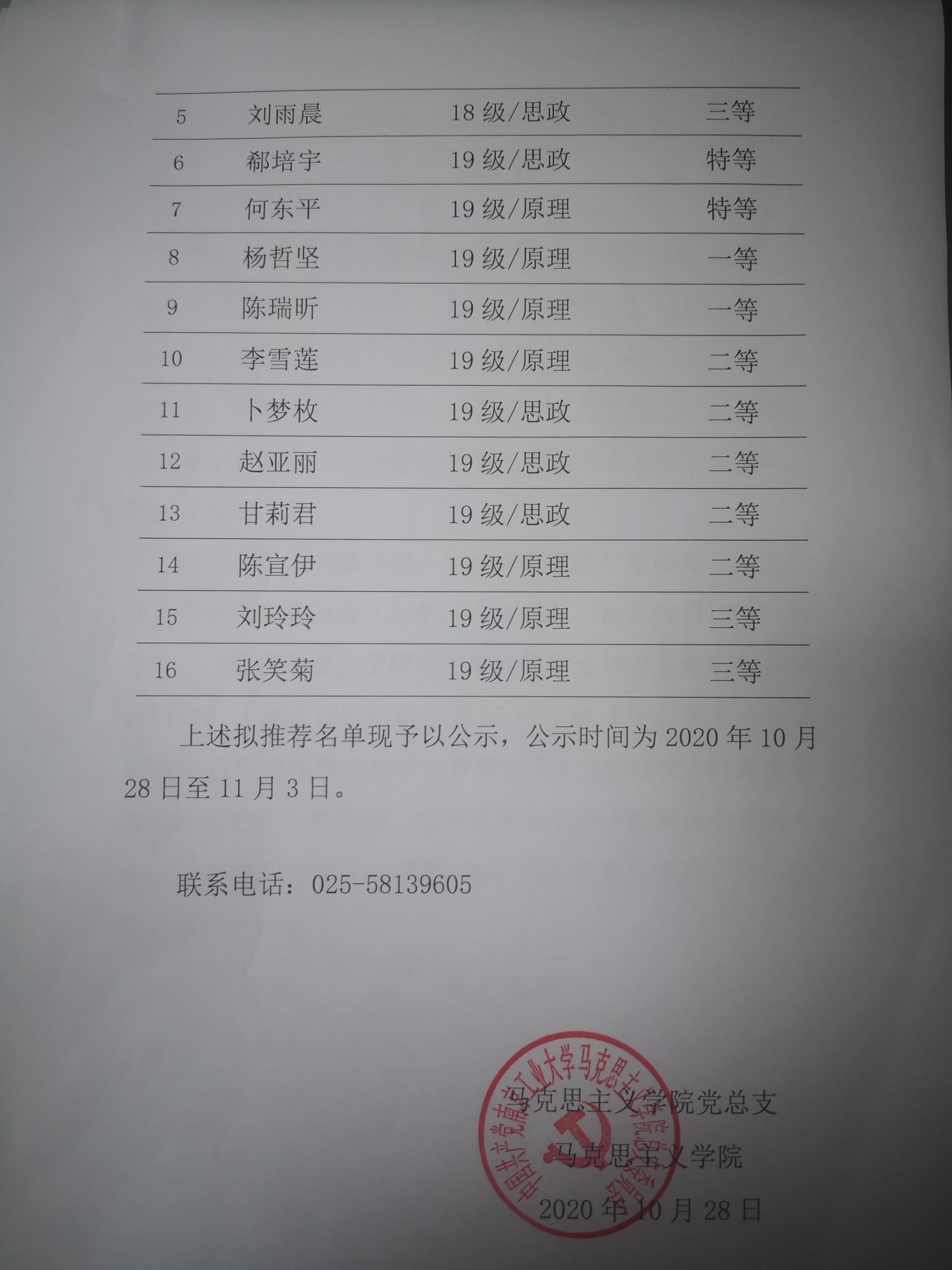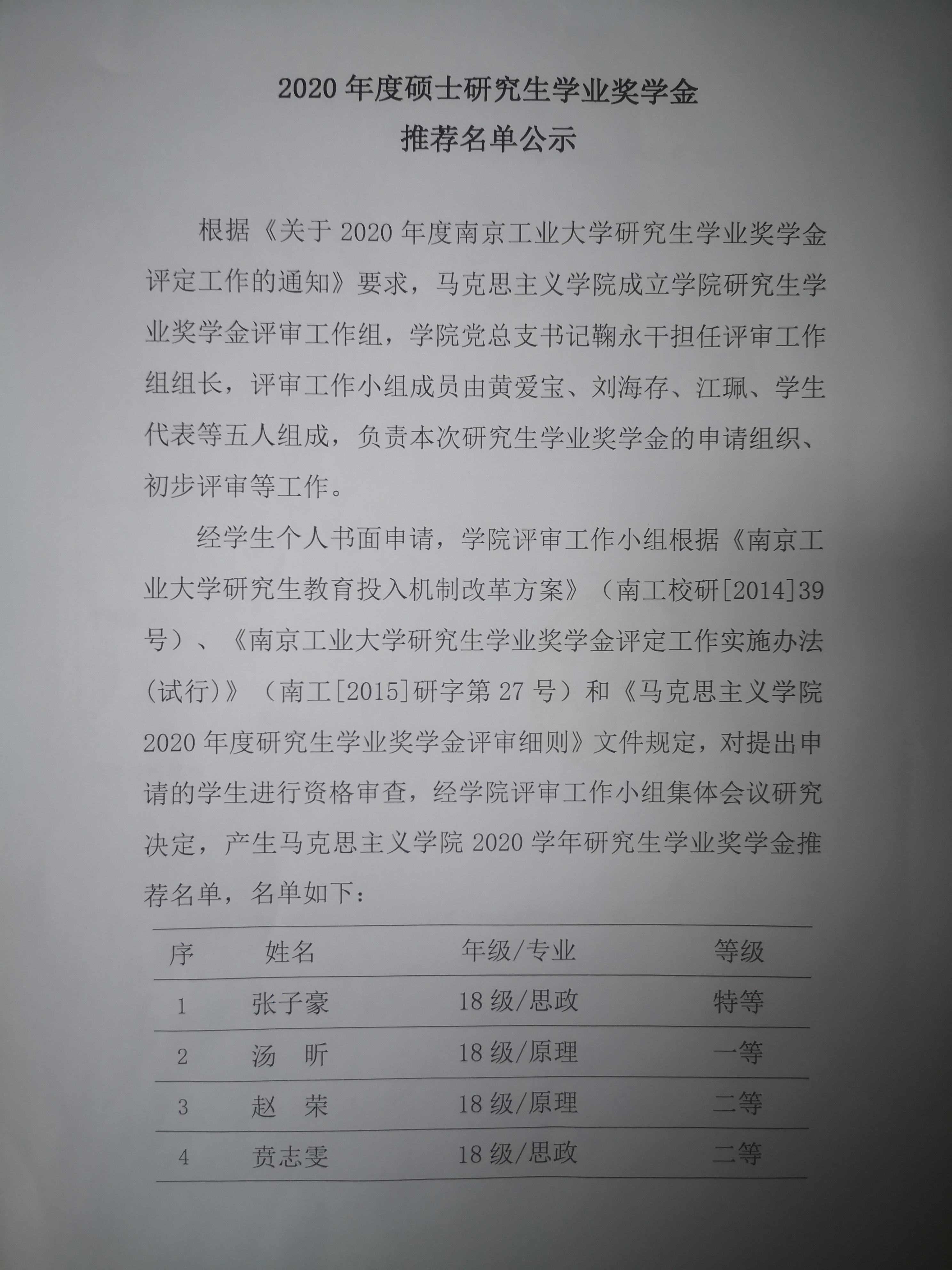 2020年度PA视讯硕士研究生学业奖学金推荐名单公示