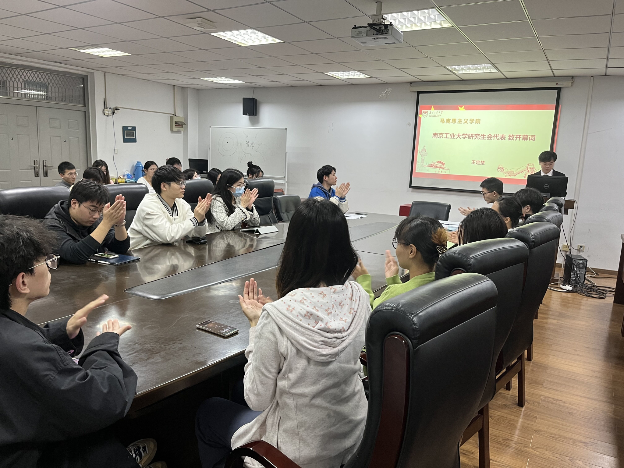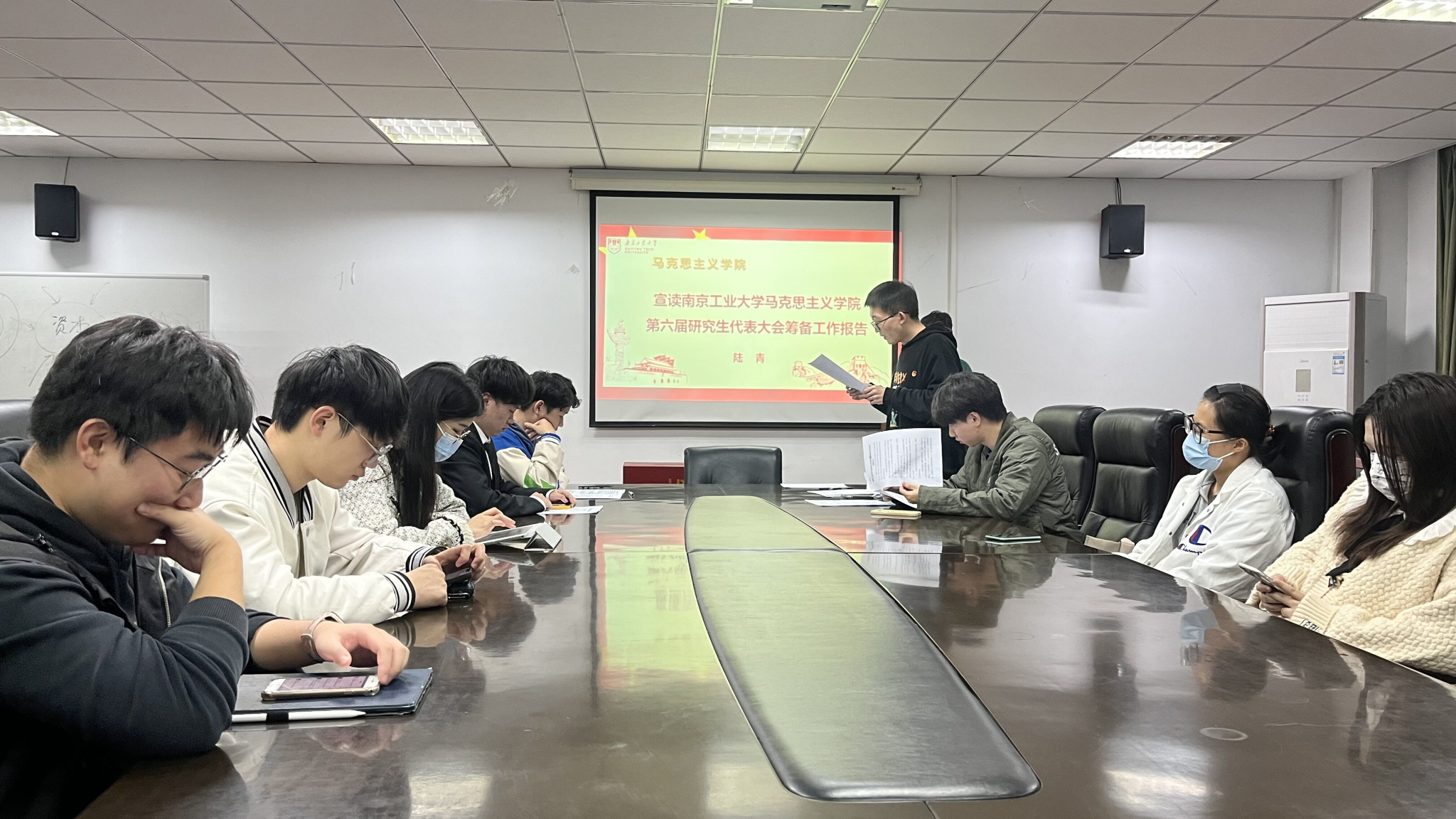 2022年11月8日晚,公司研会在明德楼第二会议室召开了第六届研究生代表大会。公司21级22级研究生参加了会议,本次会议由公司硕士研究生党支部书记卢圣源同学主持。