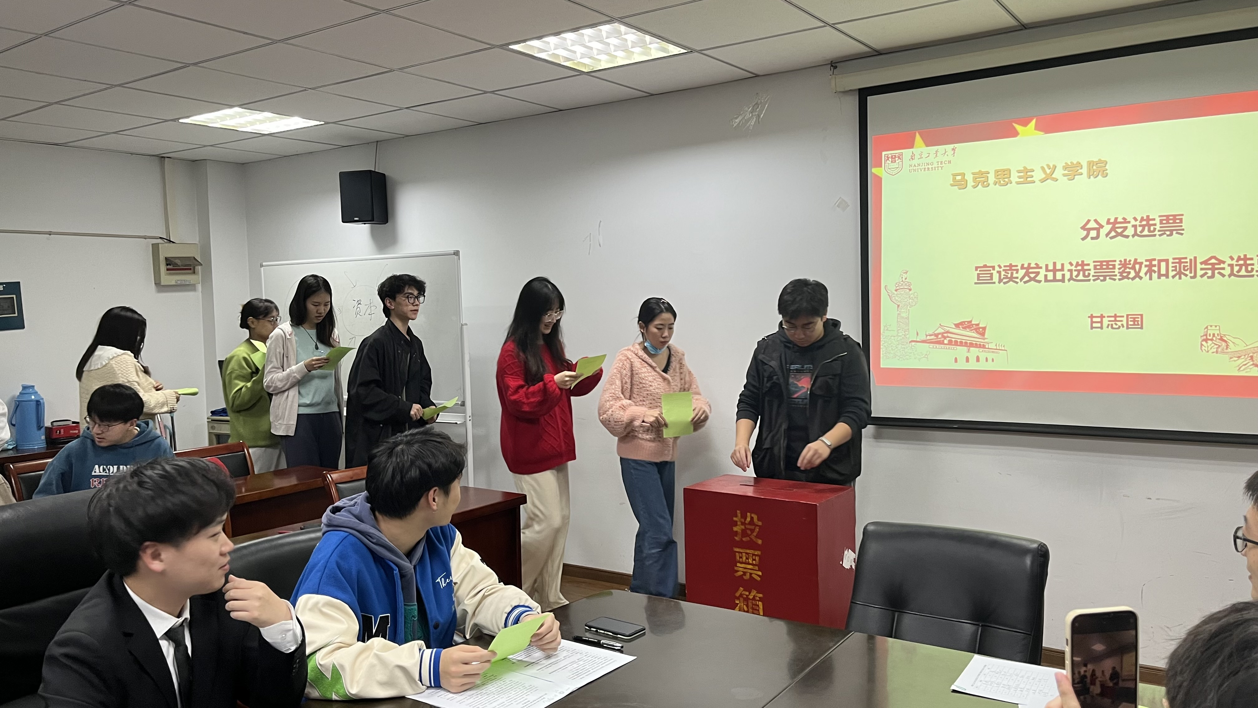 会议伊始,陆青同学介绍本次研代会代表签到人数、吴鹏同学宣读本次研代会选举办法、孙博伦同学介绍研委会候选人简历;本次代表大会主要任务是选举院研委会主要成员,选举出席上级研代会代表、院研会主席团成员。经过差额选举投票,选举公司孙博伦、吴鹏、陆青、曹馨升、何文韬为公司第六届研委会委员,选举公司陆青、吴鹏、孙博伦为公司第六届研会主席团成员。确定吴鹏、孙博伦、陆青为出席上级研代会的代表。