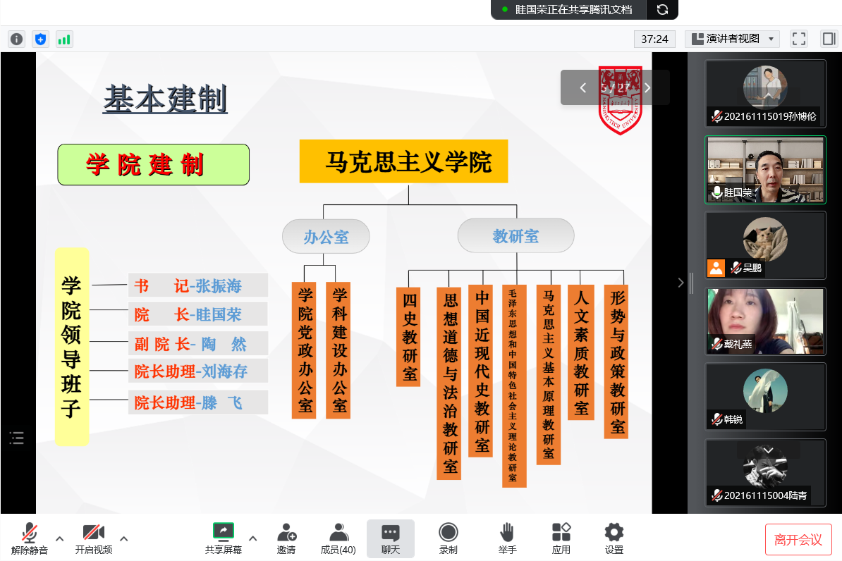 最后,眭经理对2022级研究生新生提出了几点要求:希望研究生们不仅多看文献,更要做好规划,完成相应的文献阅读任务。学会在阅读文献的过程中,理清思路,读懂文章的框架,做到学习有收获;同时在撰写学术论文中,注意文章结构、内容、层次的合理性,理论要充实,富有逻辑性;此外在课余时间积极参加学术活动,包括相关讲座、报告、实践活动(思政类社团)等。他建议研一新生尽早为学位论文做好充足的准备,需要从选题、文献积累、理论支撑、自身思考以及整体框架等做好平时的积累,为写好学位论文打下坚实的基础。