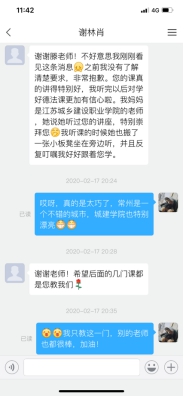 在线上教学结束后,滕飞老师还把每次课程所讲授的知识点结合疫情防控的主题,给同学们留下“这场疫情带给同学们怎样的反思和启示?”“同学们可以为战胜疫情贡献哪些力所能及的力量?”“疫情结束后,你最想做的一件事是什么?”等课后思考讨论题,培养“00后”老员工的爱国情怀,提升他们的人生境界,引导他们争做时代新人,勇于承担民族复兴的历史重任。同学们纷纷表示,在滕飞老师的课堂上不仅学到了知识,同时也收获了成长与感动,更增添了对新时代中国特色社会主义的制度自信。