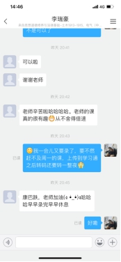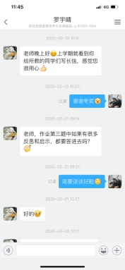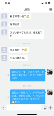 每次课程之后,滕飞老师都会有针对性的布置作业,并且对于458名同学的每次作业都会认真批改,并作出评语,在下一次视频内容中还会针对上一次的作业进行作业讲评。及时和辅导员建立联系,对未完成任务的同学进行有针对性的督促。