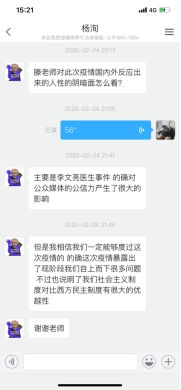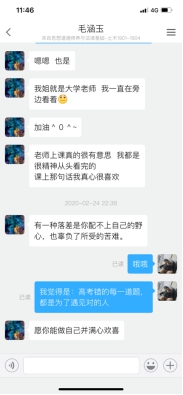 在线上教学开课之前,滕飞老师就给同学们写了一封开学信,告诉同学们:“这次疫情是最好的教科书,同学们在居家隔离的日子,也是不断提升自我的日子。如果同学们目前暂时无法为这场疫情贡献更多力量,那么就做好自己应该做的事,学好自己应该学的习,不传谣,不信谣,沉静温煦,健康努力。如果同学们在这段艰难岁月里,能够整合自己的生活态度,重塑内心信念,审视人生之路,相信等待本次疫情过尽,同学们一定会拥有更加深沉和全面的自己。”