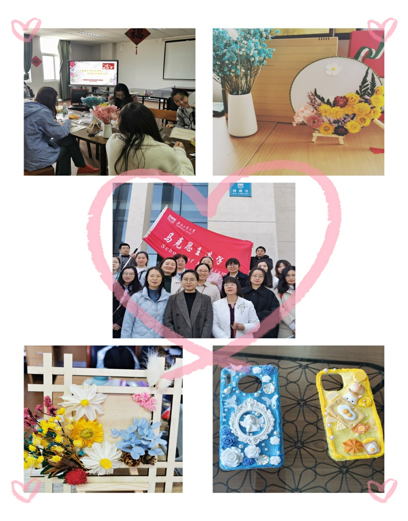 DIY手工活动在一片轻松愉快的氛围中热闹进行,老师们一边进行干花插花、团扇相框制作、手机壳DIY、刺绣工艺、非遗衍纸创作,一边畅聊工作和生活,利用灵巧的双手、丰富的色彩搭配、巧妙的形状组合,每个人都做出了与众不同、独一无二的专属节日礼物。大家捧着自己的作品合影留念,感受着手工制作带来的治愈,每个人脸上都洋溢着幸福感和成就感。